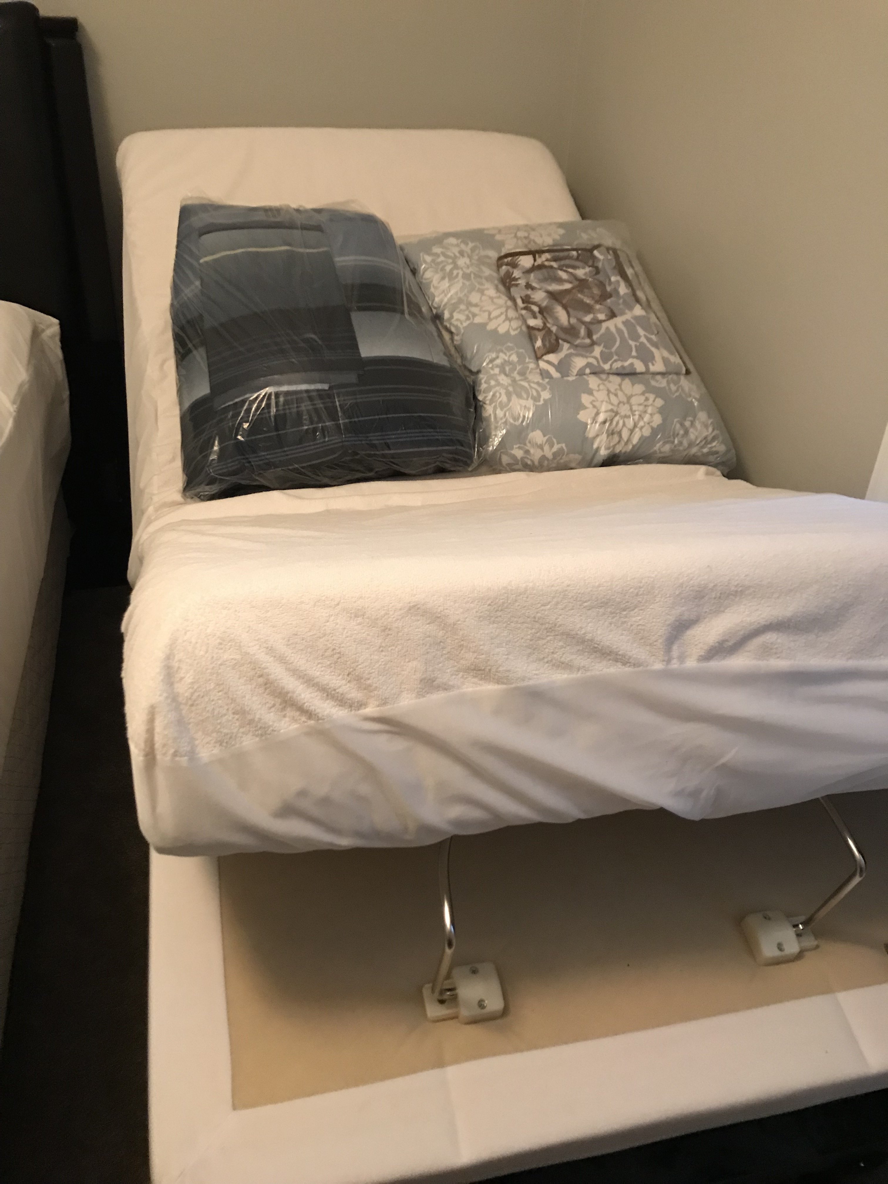 Adjustable twin bed excellent condition 2 comforters include, paid 1000 will take 500.00