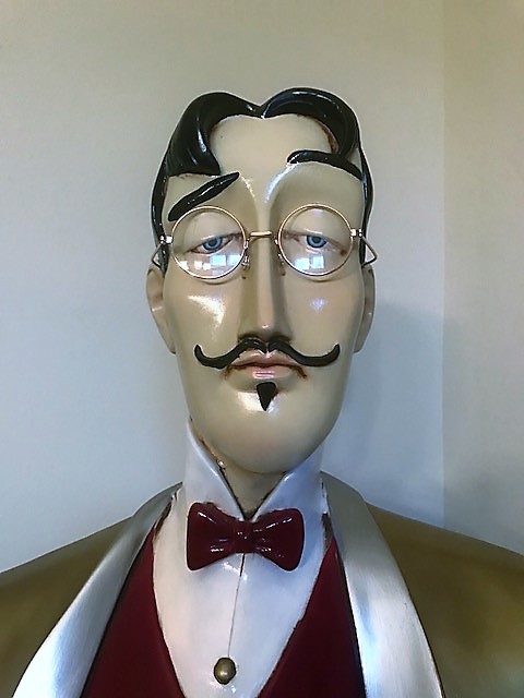 This is Jeeves and he is looking for a new home. He is 74" tall and stands on a pedestal that is about 20" in diameter. He doesn't weigh that much, but you may need two people to get him moved just because he's so tall. If you are interested, he is yours, but you will need to come get him. Call me for more details. Teresa @ (850) 933-7899
