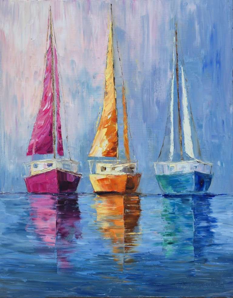Kathy Schumacher, a Niceville-based oil painter, discovered her passion for painting later in life after years of traveling with her military husband and raising two children. Originally from Wisconsin, Schumacher draws inspiration from the Gulf Coast’s coastal wetlands and ever-changing light, creating richly textured works exclusively with palette knives. Her style has evolved from realism to expressive, sculptural strokes, capturing the beauty and emotion of the natural world. The winning artwork entitled Sails in Symphony is a vibrant 30” x ”24 heavy textured impasto oil that features three jew-toned sailboats ready to take the viewer on a magical voyage.